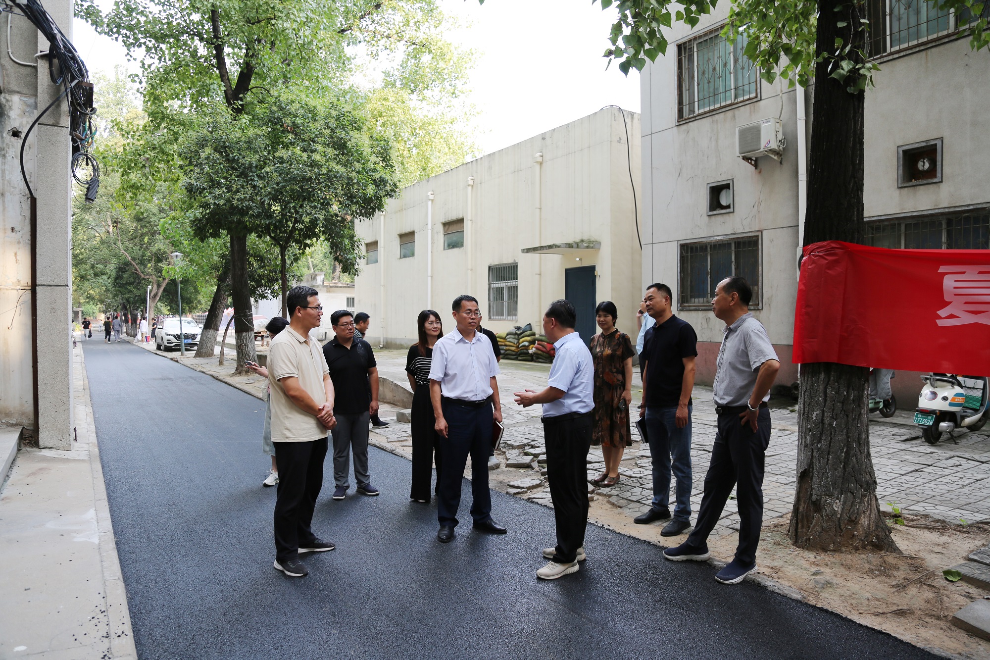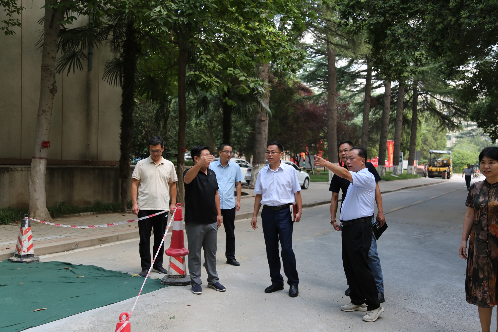 察看宿舍楼前路面修复情况
