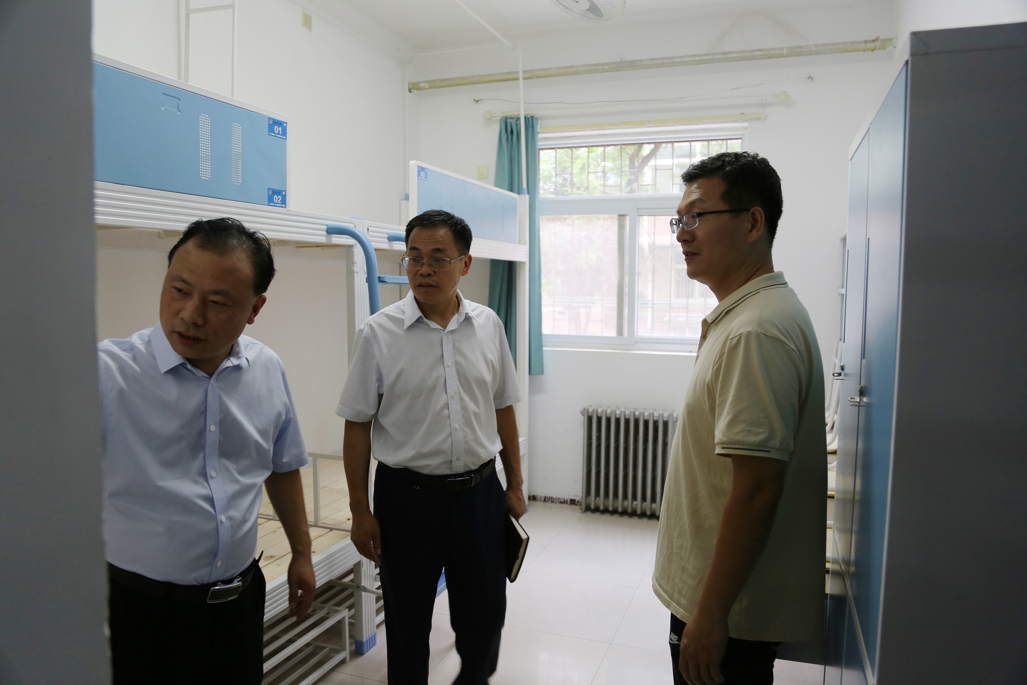在学一楼、学五楼、学七楼,周相寅实地查看了学生公寓改造和新生住宿安排情况,他要求开学准备工作要精益求精、落实落细,为学生营造干净、卫生、整洁的学习生活环境。