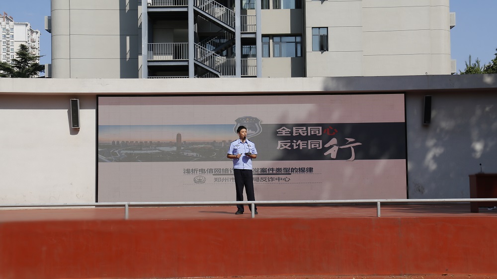 讲座现场,郑州市公安局反诈中心孙宇警官通过列举买卖 银行卡、电话冒充熟人和虚假网络兼职等一些诈骗方式,结合实际案例,向同学们介绍了常见的诈骗手段及其危害性;同时从电信网络诈骗、刷单返利类诈骗、通话类诈骗、新型诈骗、陌生快递免费礼品——刮刮乐诈骗等多种诈 骗方式入手,引导同学们辨别网络诈骗和应对各种诈骗手段。最后,孙宇警官提醒同学们要提高警惕并树立正确的网络安全意识,发现后立即拨打110。