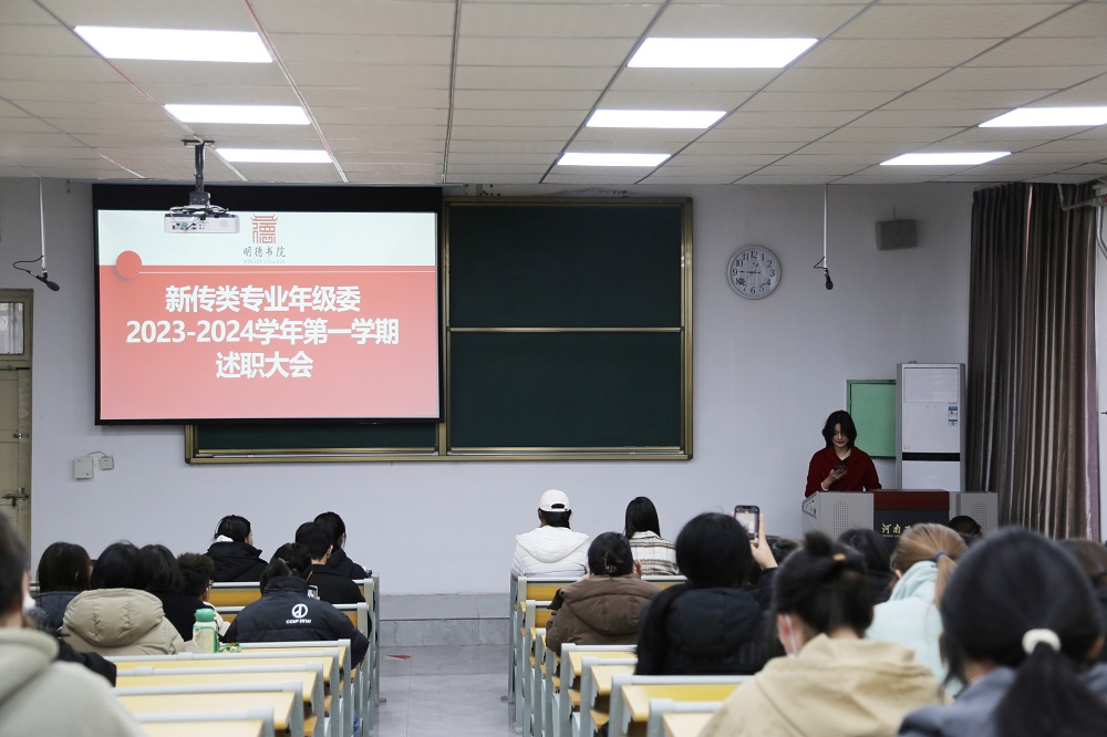 新传、经贸专业年级委员会分别在教学楼1120和实验楼118举办了2023-2024学年第一学期年级委员会述职大会。大会上,各专业年级长、副年级长、部门负责人轮流登台进行述职,总结过去一个学期的工作,并对下学期工作目标进行展望。