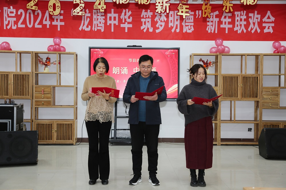 联欢会节目丰富多彩,充展现了教职工们的多才多艺和昂扬向上的精神风貌。诗歌朗诵《中原颂》表达了教职工们对祖国的热爱和对美好生活的向往;舞蹈《好运来》更是将现场气氛推向了高潮;在一片欢声笑语中,三句半节目登场了,诙谐幽默的台词逗笑观众;最后以欢快的《兔子舞》带动全员动起来。此外,联欢会还设置了趣味游戏,教职工们积极参与,现场气氛十分热烈,大家在欢声笑语中拉近了彼此的距离。