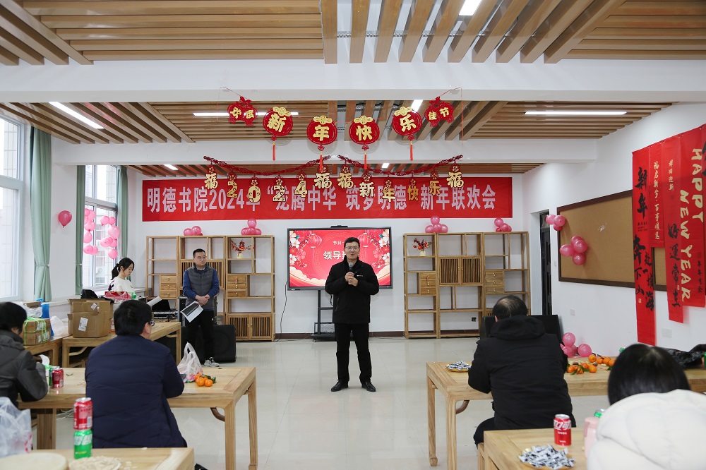 联欢会伊始,书院党委书记魏朝举发表了热情洋溢的致辞,向全院教职工致以诚挚的问候和新年的祝福。魏朝举表示,过去的一年里,全院教职工共同努力,取得了骄人的成绩,希望大家在新的一年里继续发扬拼搏精神,为学校的发展贡献力量。