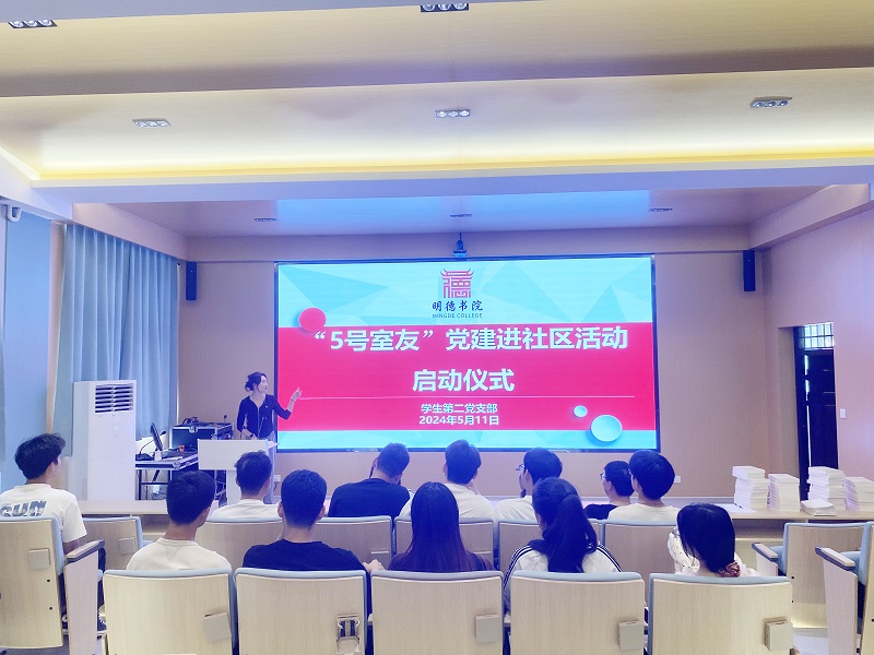 “5号舍友”党建进社区活动启动仪式在实验楼118教室举行,为首期挑选的44个学生宿舍各配备一名党员领学员作为该宿舍的第5位成员,开展结对交友朋辈帮扶活动。仪式由辅导员董雪甜主持。
