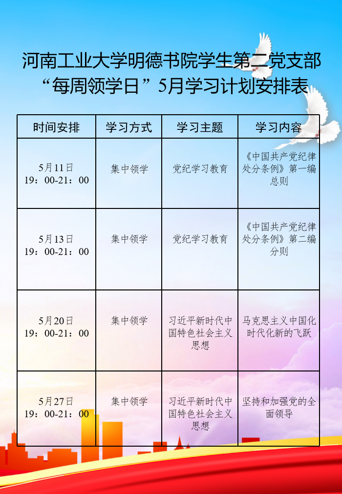 “5号室友”工作簿和“每周领学日”5月学习计划安排表