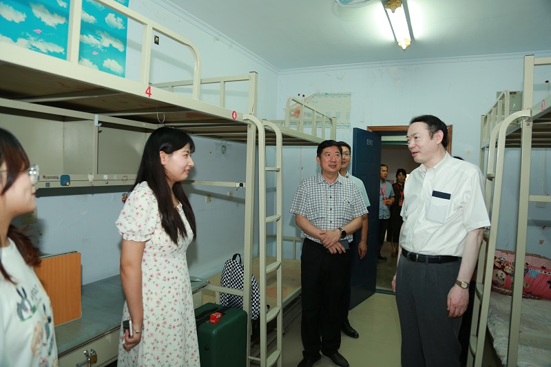 、相关专业学院等单位负责同志陪同下,深入嵩山路校区迎新报到现场,看望前来报到的新生和家长,慰问参加迎新工作的师生员工。