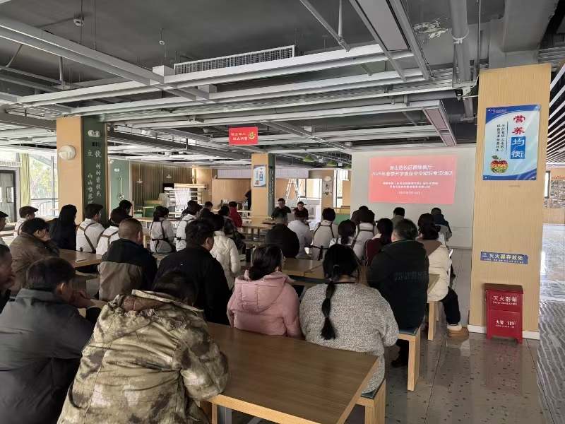 在粮缘餐厅组织开展了2025年春季开学食品安全知识专项培训,餐饮公司代表及餐厅从业人员参加培训。
