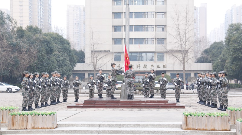 7时整,伴随着雄壮的国歌声,鲜艳的五星红旗在国旗护卫队的护卫下缓缓升起,全体师生肃立,向国旗行注目礼,奏唱《中华人民共和国国歌》。这一刻,每个人心中都涌动着对祖国深深的热爱和崇高的敬意,共同见证这一神圣庄严的时刻。