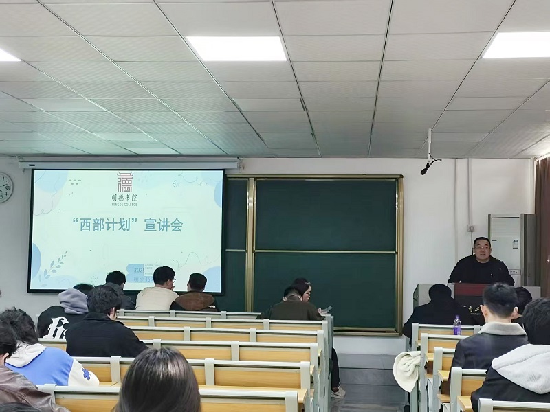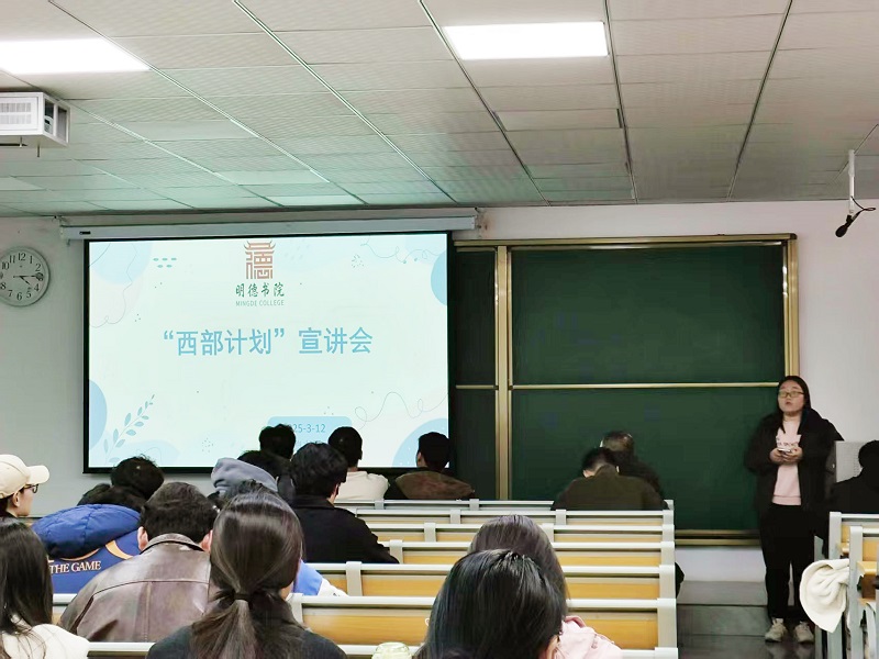 于3月12日在教学楼422教室成功举办“西部计划”政策宣讲会。此次活动由书院学工办主任、2025届毕业生辅导员薛晓晓主持,团委书记刘振伟担任主讲,近百名应届毕业生到场聆听。