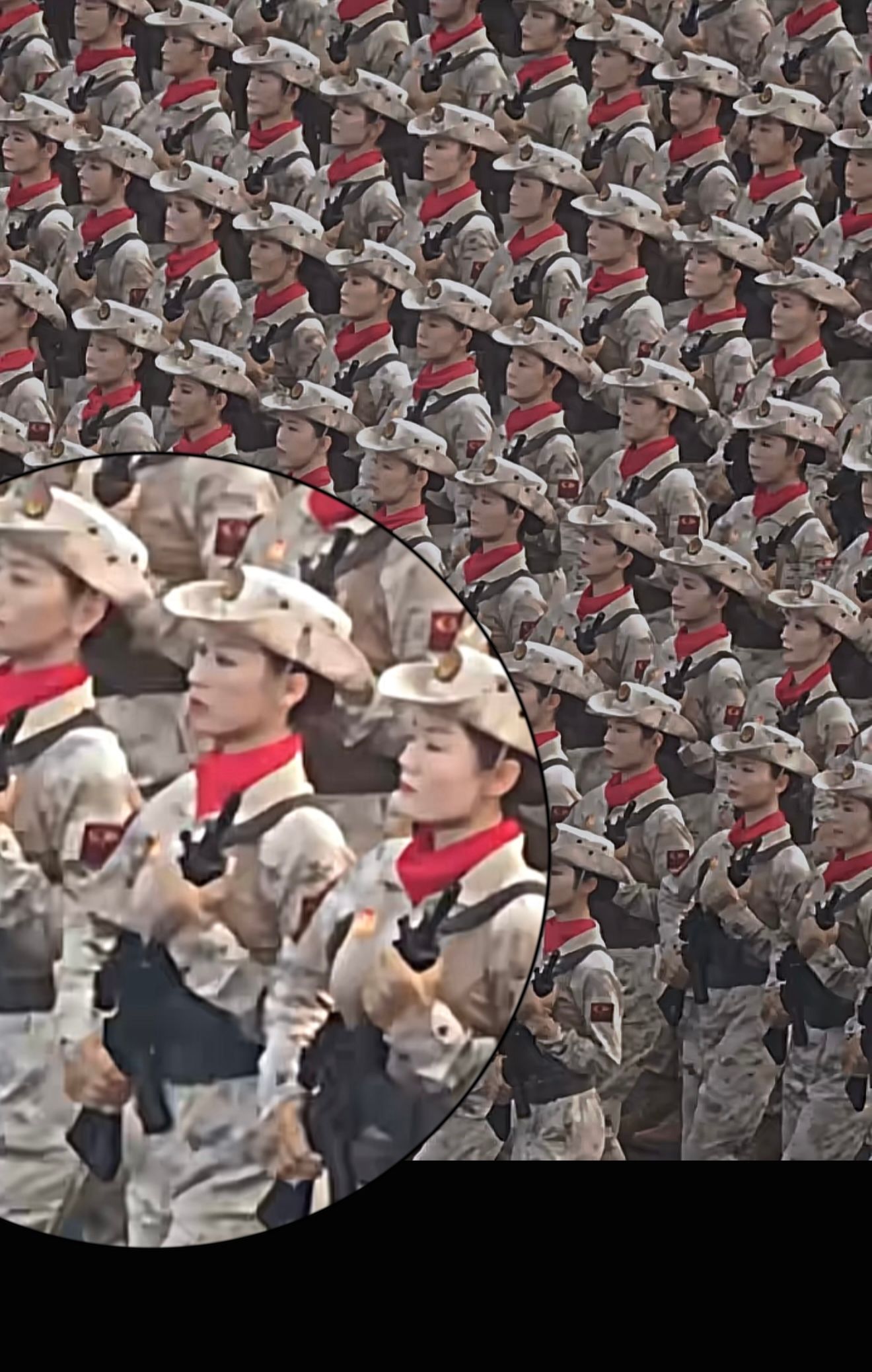 优异的综合素质和出色的仪仗经历,为李嘉晨琦赢得了参加重大历史时刻的宝贵机会。她光荣入选了纪念中国人民抗日战争暨世界反法西斯战争胜利70周年阅兵式的民兵方阵第1排左边数第3名。在这份荣耀的背后,是常人难以想象的高强度训练和极致付出。阅兵训练是对意志力和体能的双重考验。为确保每一个动作都精准无误、每一次排面都整齐划一,李嘉晨琦和战友们日复一日地在训练场上挥洒汗水,从军姿定型到步幅步速,从眼神方向到扛枪角度,都力求分毫不差,达到最高标准。训练期间,她经历了盛夏的酷暑和体能极限的挑战,但从未退缩。踢坏的军靴、磨破的脚踝、湿透的衣衫,都成为了她刻苦训练、追求卓越的无声证明。