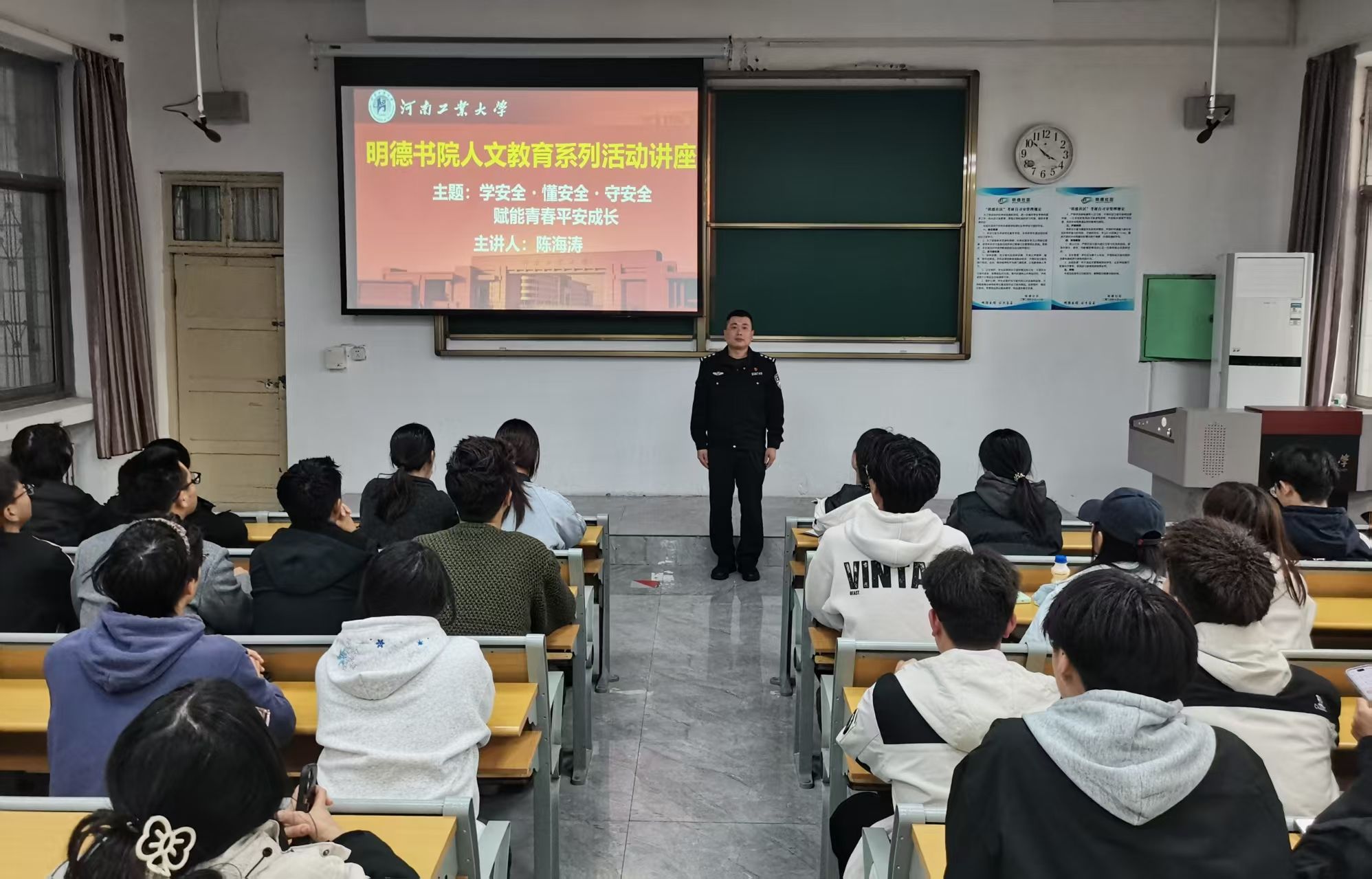 在嵩山路校区1120教室为2025级学生举办了主题为“学安全・懂安全・守安全 赋能青春平安成长”的专题讲座。本次讲座特邀郑州市公安局反诈支队宣传骨干,多年从事打击治理电信网络诈骗犯罪工作的民警陈海涛担任主讲嘉宾。讲座由做爱视频