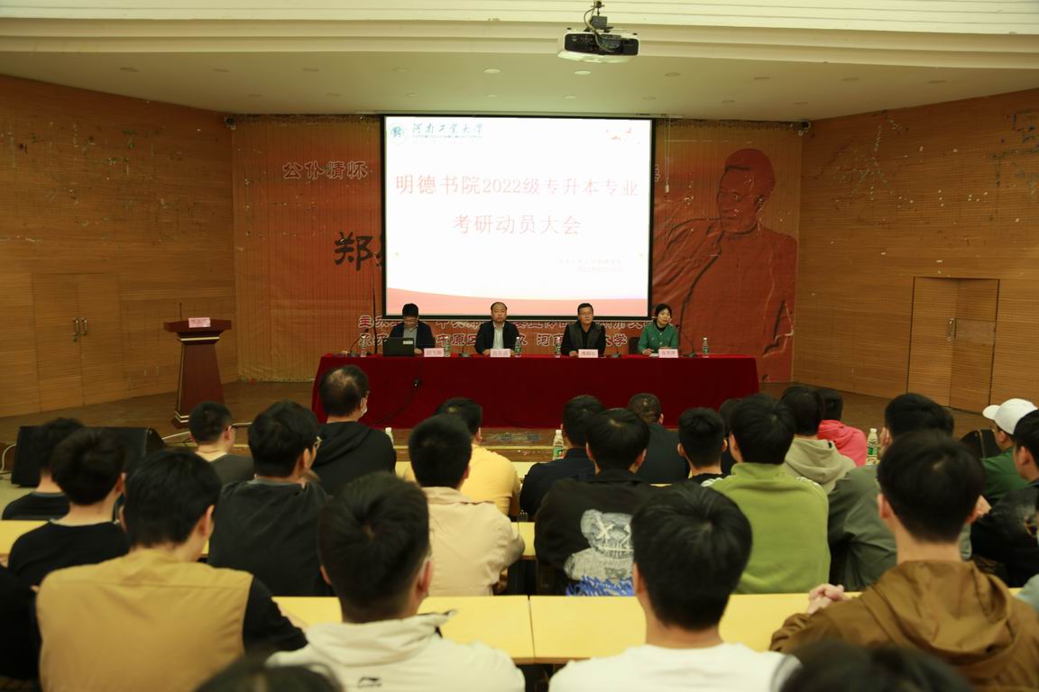 在嵩山路校区学术报告厅召开了2022级专升本专业学生考研动员会,书院党委书记魏朝举、院长谷存昌、党委副书记刘飞翔、副院长张雪萍、全体毕业班辅导员和全体2022级专升本专业学生参加会议,会议由魏朝举主持。