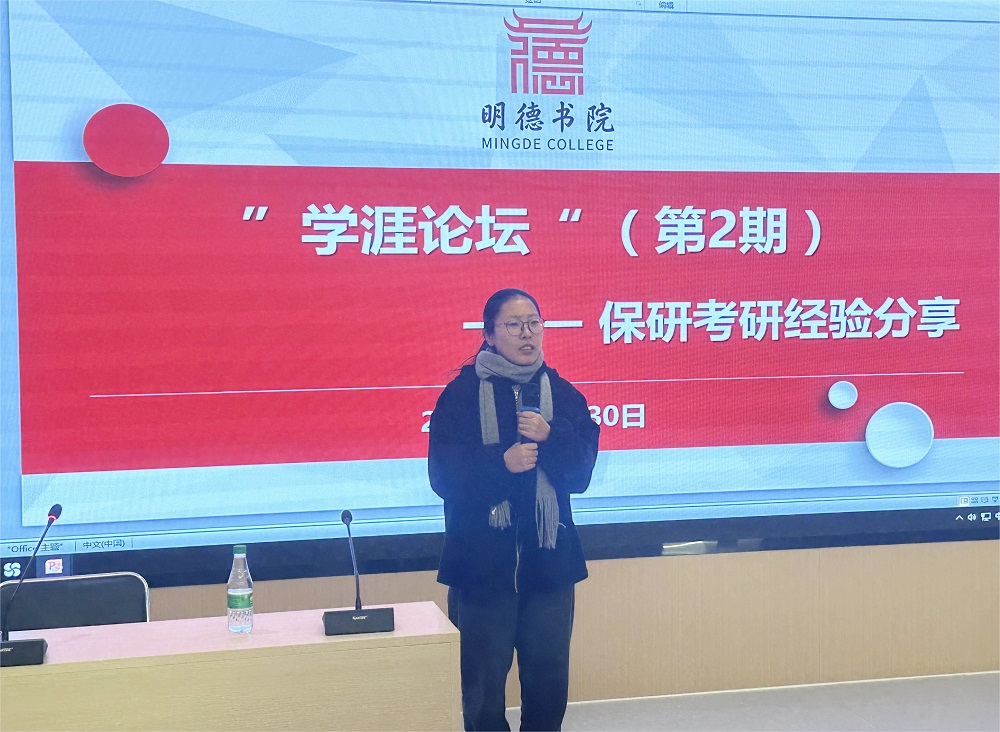 在嵩山路校区实验楼3118多功能厅举办了第2期“学涯论坛”。论坛邀请我校经济贸易学院优秀学生曹婷婷、常怡春和付艳勤同学围绕“考研和保研经验交流”进行了专题分享。