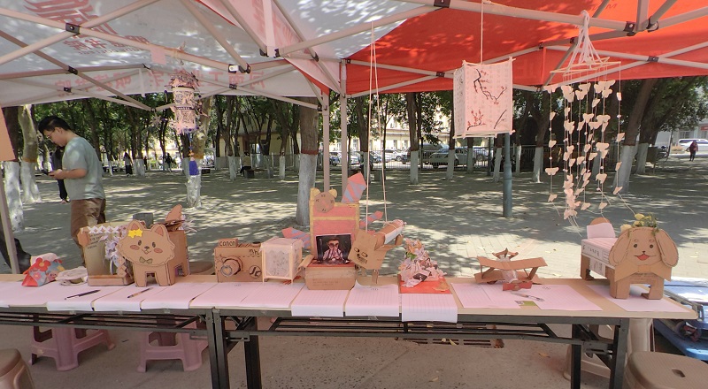 活动现场,志愿者们满怀热情地向过往学子宣讲此次活动,强调变废为宝与环保生活的实际价值,激发了大量同学的兴趣。同学们纷纷回到宿舍,找出废旧纸箱,一番巧思后动手改造,赋予其新生命——有的涂上绚烂色彩变身萌趣动物摆件,有的改造成实用笔筒,引来一片赞赏,生动展示了“废品”转化为宝藏的过程。另外,部分同学用心描绘了一幅幅富含深意的宣传画,通过细腻的工笔和巧妙的构图展示了自己对环保生活的独特理解和深刻感悟,引发大家对环保问题的深度反思。