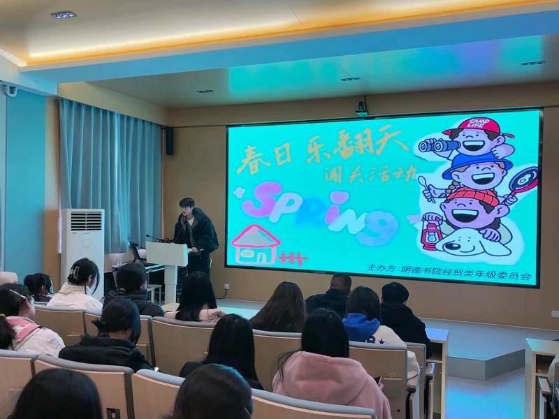学工办主任薛晓晓、辅导员雷超凡以及经贸类专业年级委员会全体成员和春日乐翻天活动前十名的队伍代表。本次活动由经贸年级长薛竣航同学主持。
