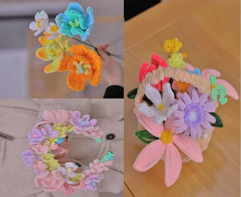 随着活动的进行,一件件令人眼前一亮的作品相继诞生。有的同学以细腻的手法,将扭扭棒幻化成一束束娇艳欲滴的花朵,仿佛能嗅到淡淡的花香;有的同学则发挥奇思妙想,制作出中国结;还有的同学别出心裁,打造出时尚独特的发箍饰品,兼具美观与个性。