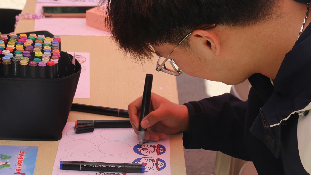 活动通过在校园内放置宣传展架、设置横幅等方式,营造良好的心理健康教育氛围。展板上向同学们展示了心理健康小知识、心态调整技巧等内容,同时在宣传点开展了手绘DIY笑脸的特色心理活动。同学们在活动现场的人脸绘板上进行DIY手绘,并与大家分享所画笑脸背后的故事。现场还准备了白色卡纸,让同学们作画,表达自己的情绪,纾解心情,并与自己所绘笑脸合影留念。整个活动过程中同学们热情高涨,踊跃参加,现场氛围热闹非凡,为校园增添了色彩。