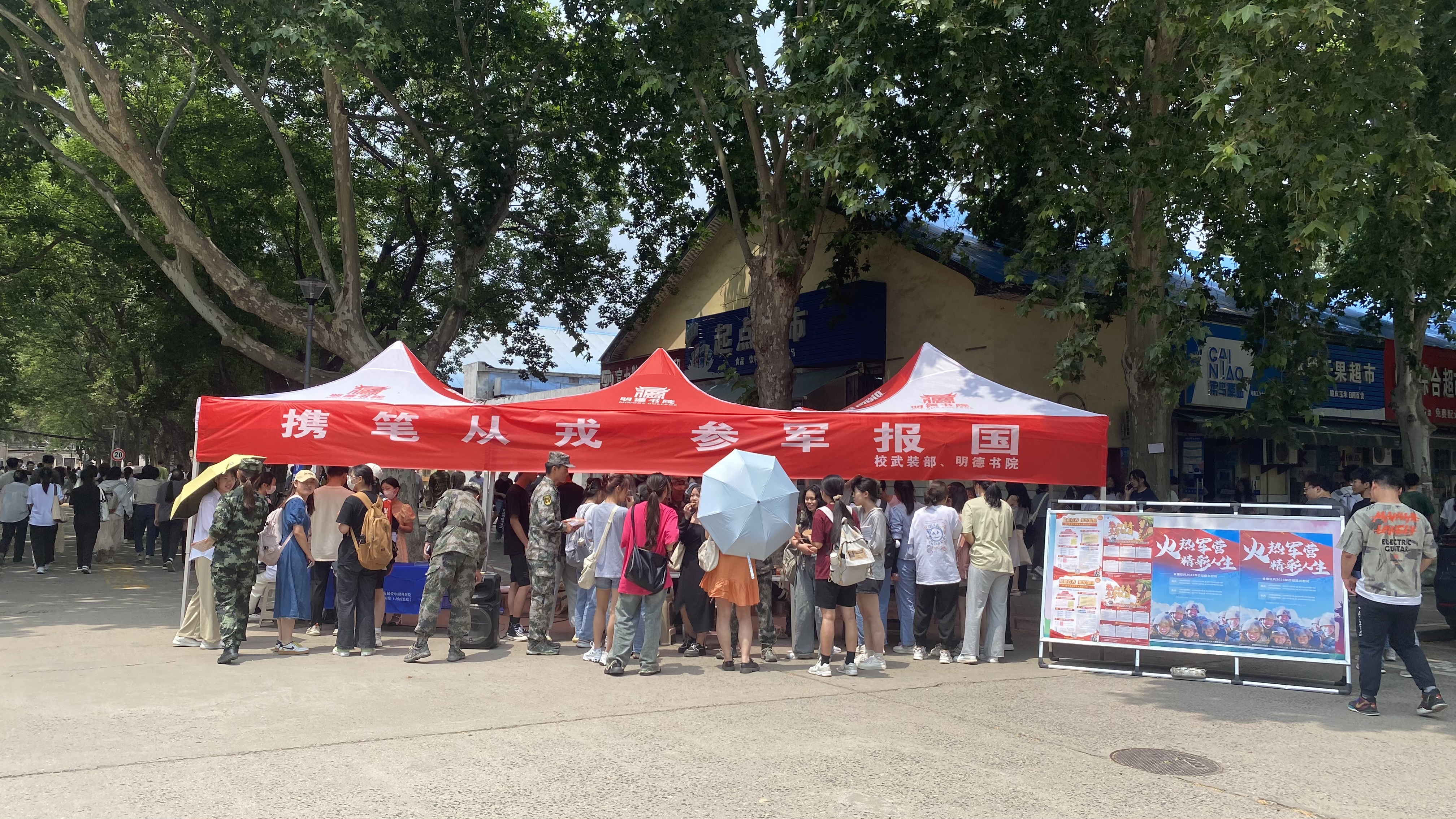 校园宣讲过程中,征兵宣讲团成员与同学们面对面地分享了各自的参军入伍缘由、军旅生活场景以及退伍后的个人发展情况,讲述了自己军旅生活中的体验和收获,号召符合条件的同学们携笔从戎、报效祖国。退役士兵代表结合自身实际情况对大学生参军入伍的优惠政策进行了详细介绍,包括部队发展、退役安置、学历提升、学费减免及经济补偿等方面的优抚政策。嵩山路校区校医院在活动现场中对有意应征报名的同学进行了视力检测、血压测量、龋齿检查等检查,并对入伍体检达标给出了指导和建议。