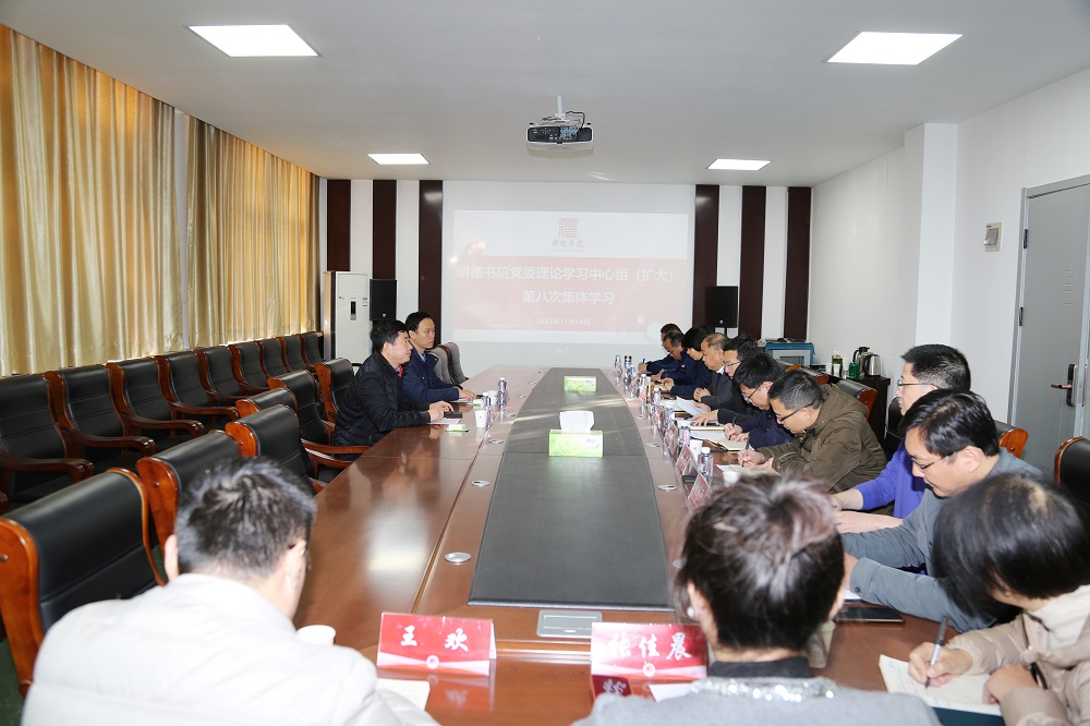 党委在嵩山路校区办公楼207会议室召开党委理论学习中心组(扩大)第八次学习会议,集体学习“习近平总书记对宣传思想文化工作作出的重要指示”。副校长李焕锋到会指导学习活动,党委宣传部部长黄泽峰全程巡听旁听。书院领导班子成员、党委委员、各党支部书记、科室主任等参加了此次学习会议,会议由书院党委书记魏朝举主持。