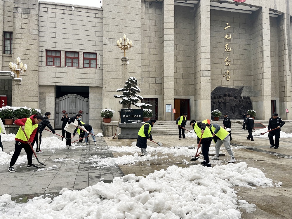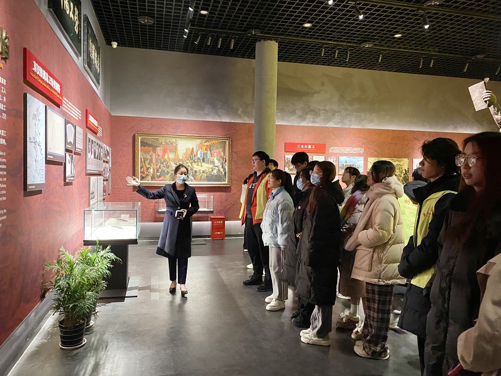 研学实践教育活动中,学生党员们积极帮助二七纪念堂进行门前铲雪、卫生清扫等工作,获得了工作人员的一致好评。随后,在工作人员的讲解中,师生党员进入纪念堂,依次浏览了铁路修建、星星之火、革命烈焰、永恒丰碑、精神指引、传承弘扬、红色地标、城市记忆、百年辉煌等九个展厅。纪念堂以传承弘扬“二七精神”为主线,通过讲解员的讲解、220多张图片的展示、数字智能化资源生动的呈现,书院师生深入了解了52位“二七烈士”的英勇事迹,深刻认识了“二七精神”的丰富内涵。之后,郑州市二七纪念堂的工作人员为参加本次活动的学生颁发了“社会实践证书”,鼓励他们积极参加研学实践教育活动。