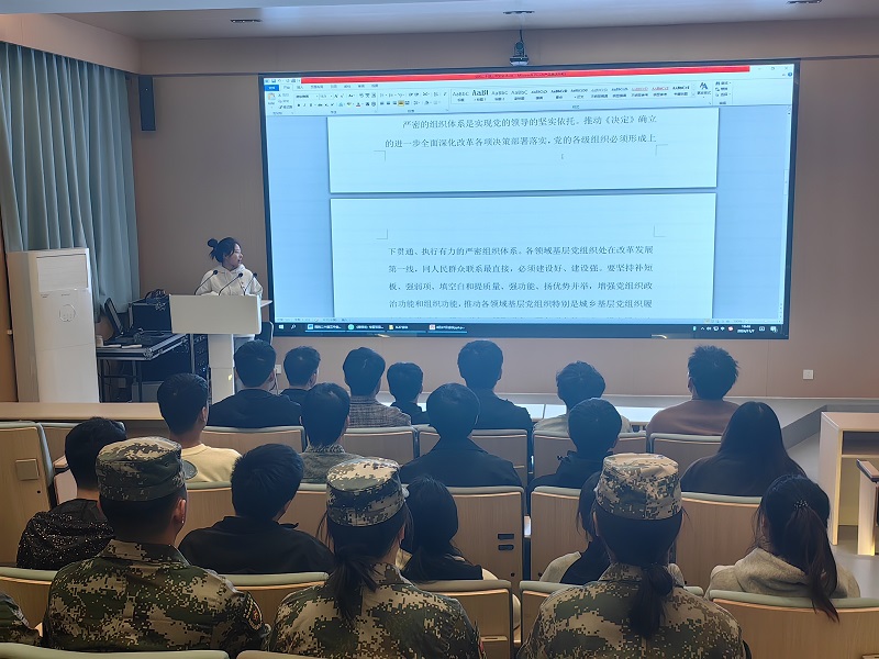 接着,安紫钰同志带领大家学习关于党的二十届三中全会相关内容;交流研讨环节,党员们踊跃发言。国防预备役党支部的党员表示,将牢记使命担当,不断提升自身军事素养和应急应战能力,为国防建设贡献力量,为改革发展保驾护航。学生第一党支部的党员则结合自身实际,分享了学习心得。他们表示:要以全会精神为指引,努力学习专业知识,提高创新能力,积极投身社会实践,在中国式现代化建设中展现青年党员的风采。