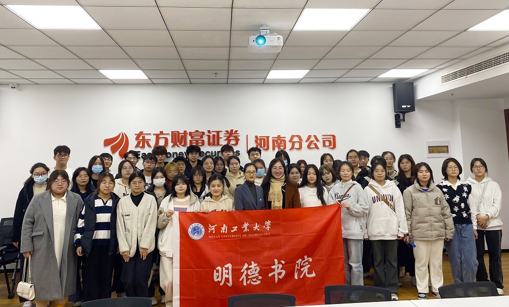 经贸类专业学生在辅导员张佳晨老师的带领下,统一乘车前往东方财富证券(河南分公司)开展“研学进企业,匠心助成长”企业参观研学活动。