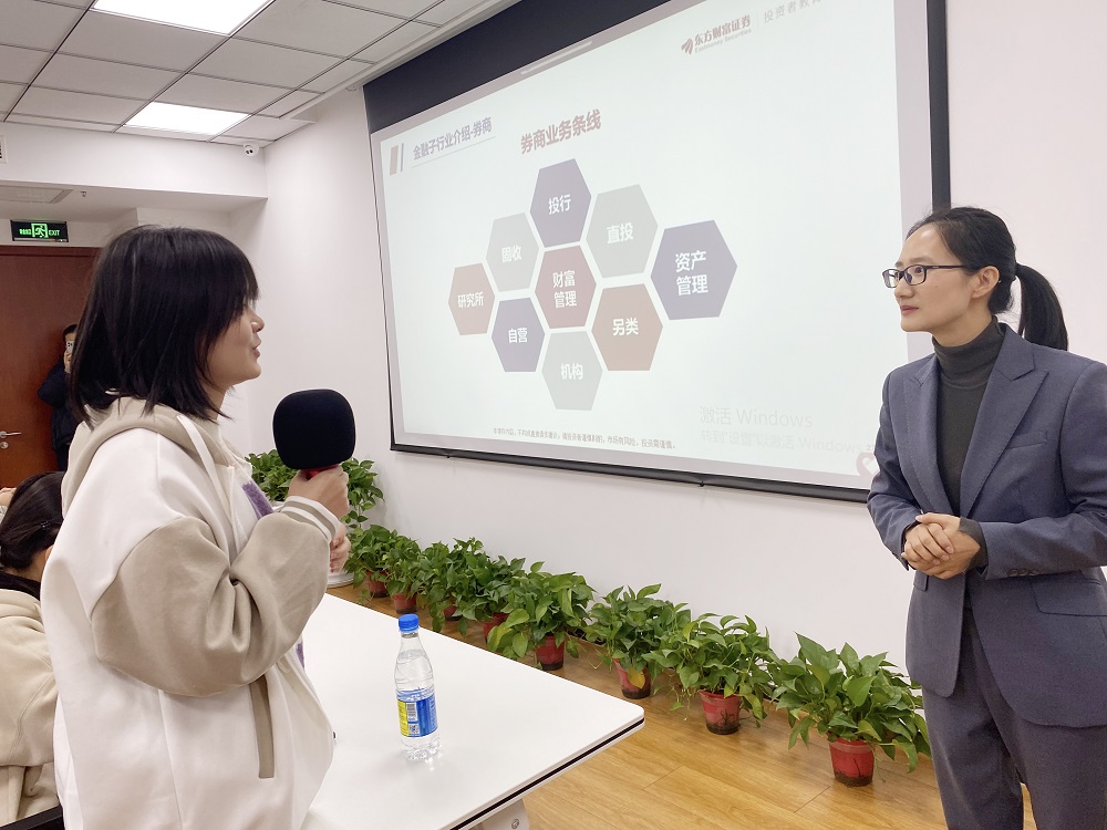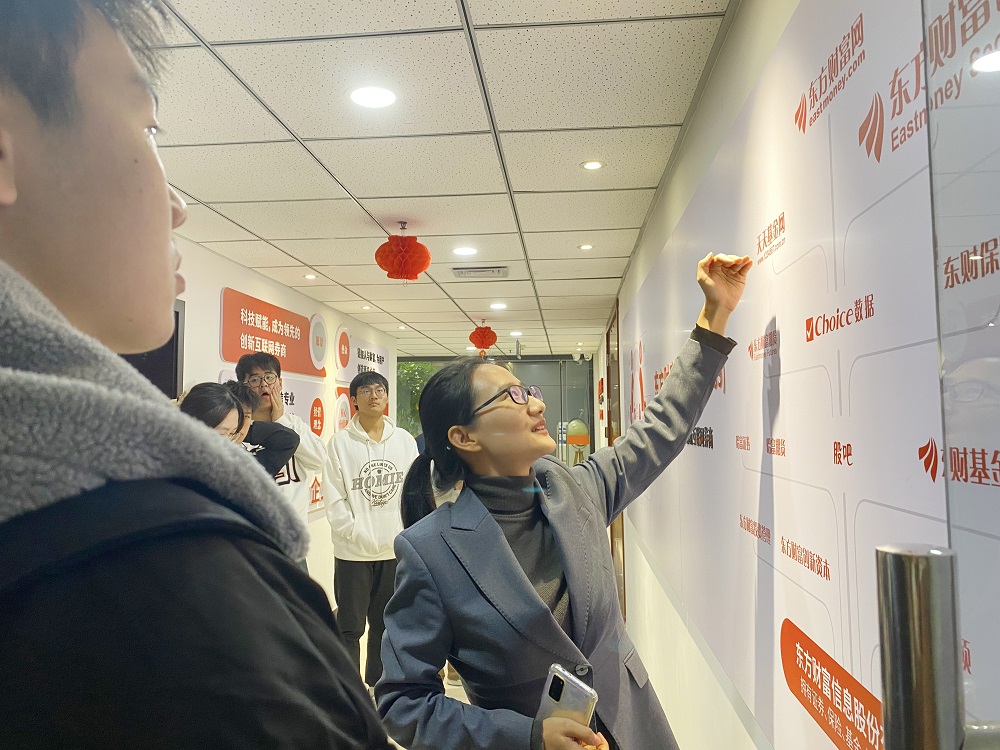 在交流中,学生们表现出强烈的兴趣,纷纷向公司员工提出自己关于金融行业的问题,比如投资理财、金融产品、未来发展前景等方面。公司员工们耐心地解答了同学们的问题,并分享了自己的工作经验和行业见解。通过与就业人员的交流,不仅拓宽了专业视野,也增加了学生们的知识储备。调研走访活动在热闹融洽的交流氛围中圆满结束。活动结束后,许多同学表示此次活动让他们受益匪浅,不仅深入了解了金融行业的发展现状,也增强了对金融市场的认识和理解。